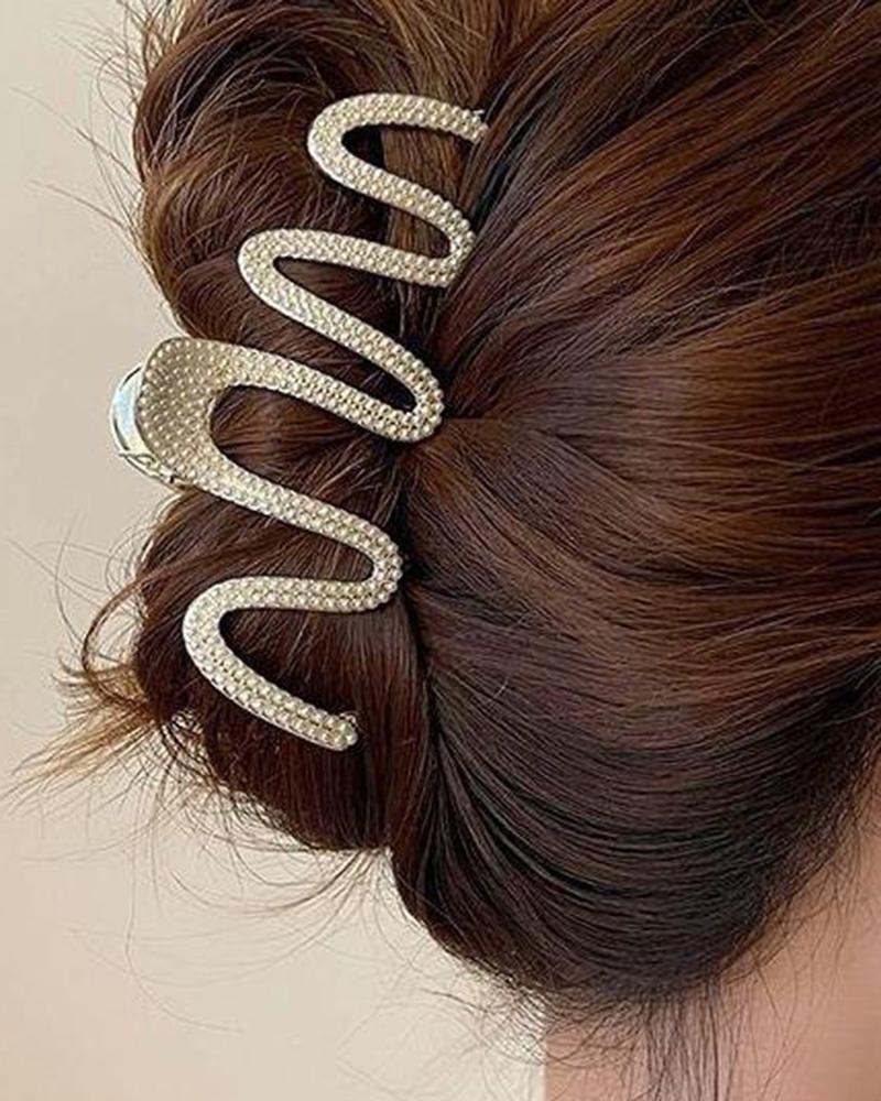 1pc Rhinestone Wave Shark Hair Claw, Style2