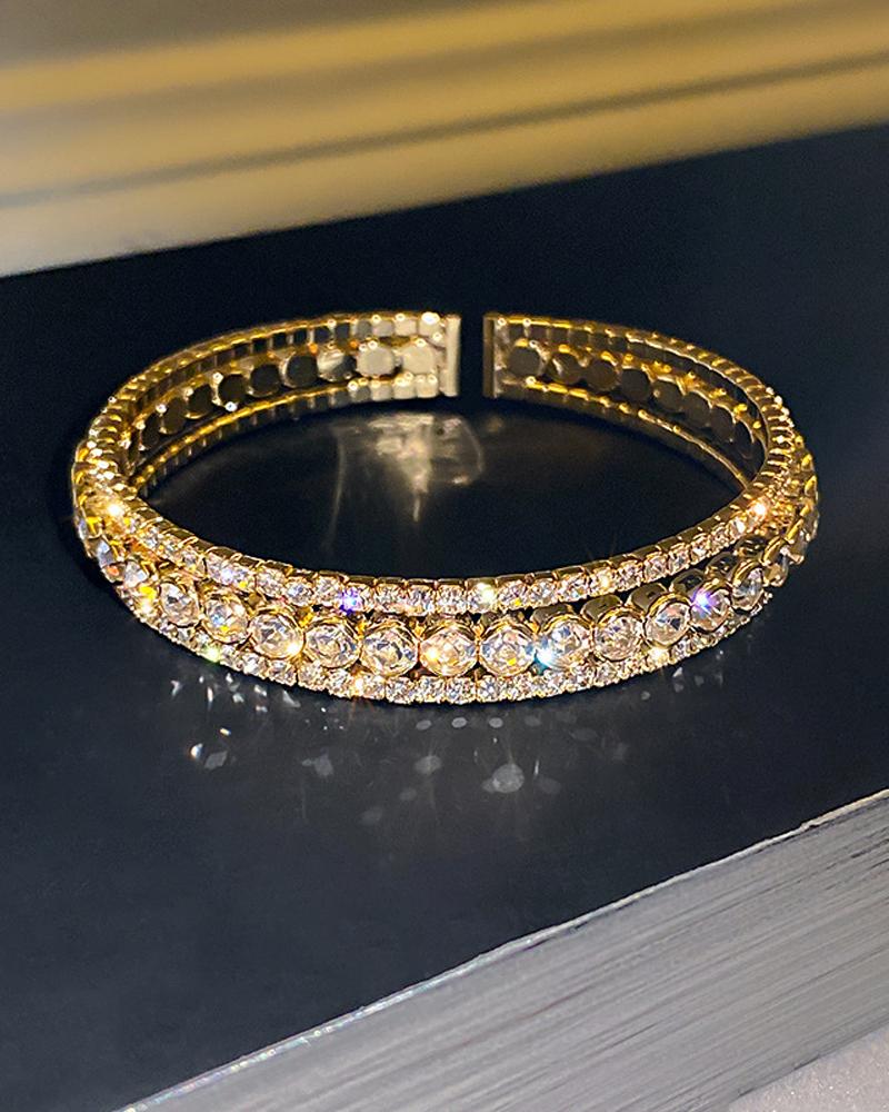 1pc Sparkling Rhinestone Decor Cuff Bangle, Style2