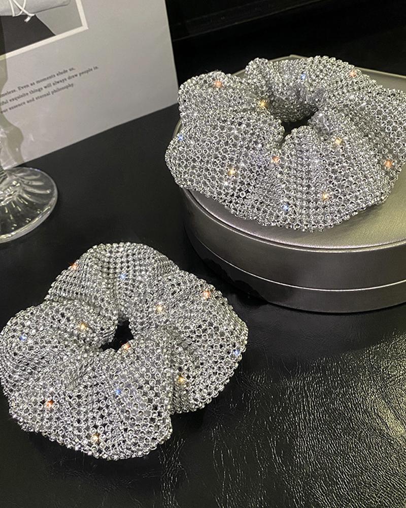 1pc Sparkling Rhinestone Decor Scrunchie, Silver