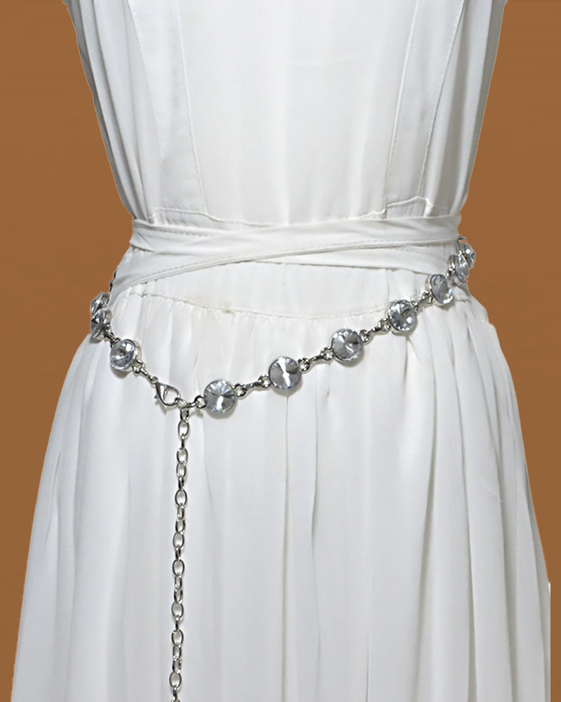 1pc Sparkling Rhinestone Decor Waist Chain, Silver