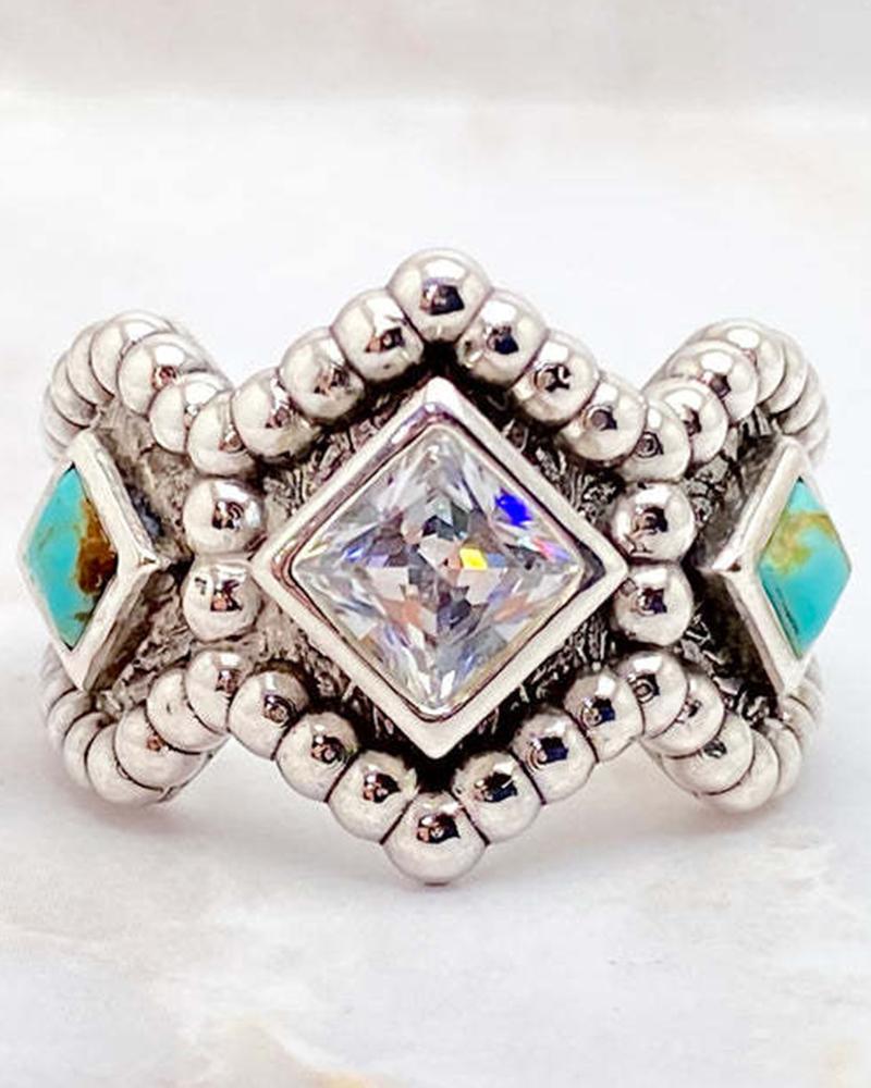 1pc Turquoise Asymmetrical Geometric Ring, Silver
