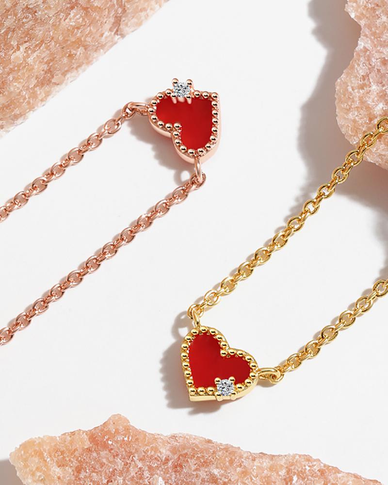 1pc Valentine's Day Heart Pattern Rhinestone Pendant Chain Necklace, Gold