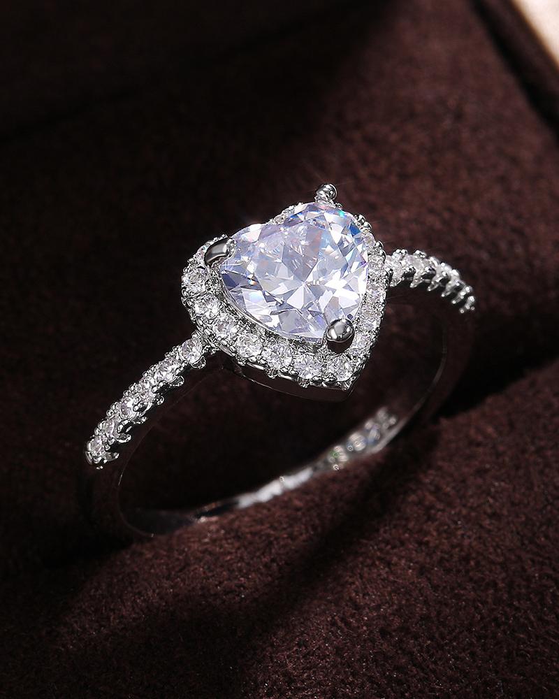 1pc Valentine's Day Zircon Heart Shaped Rhinestone Ring, Silver