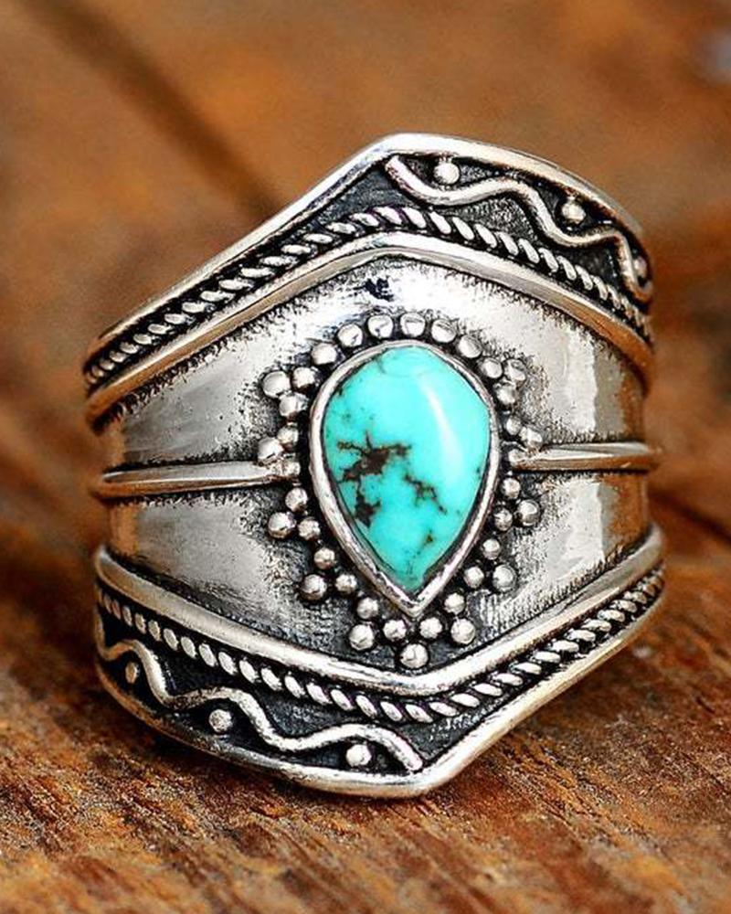 1pc Waterdrop Turquoise Asymmetrical Ring, Silver