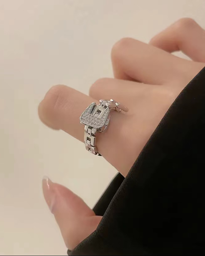 1pcs Adjustable Allover Rhinestone Decor Ring, Gold