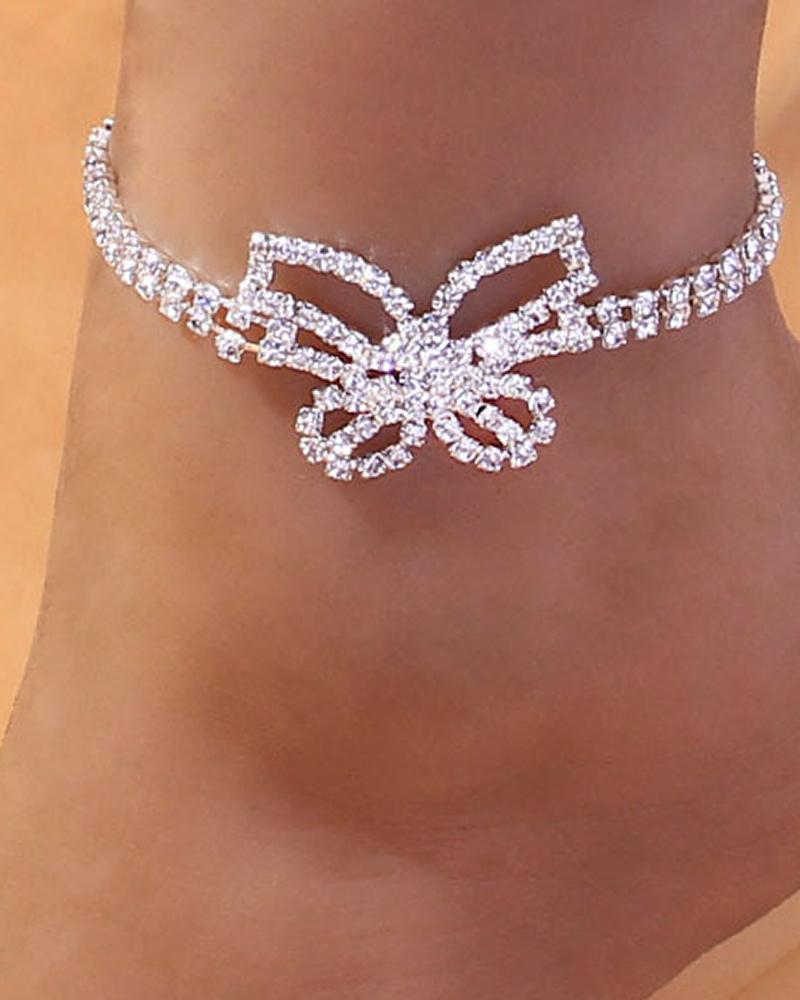 1pcs Allover Rhinestone Big Butterfly Pattern Chain Anklet, Silver