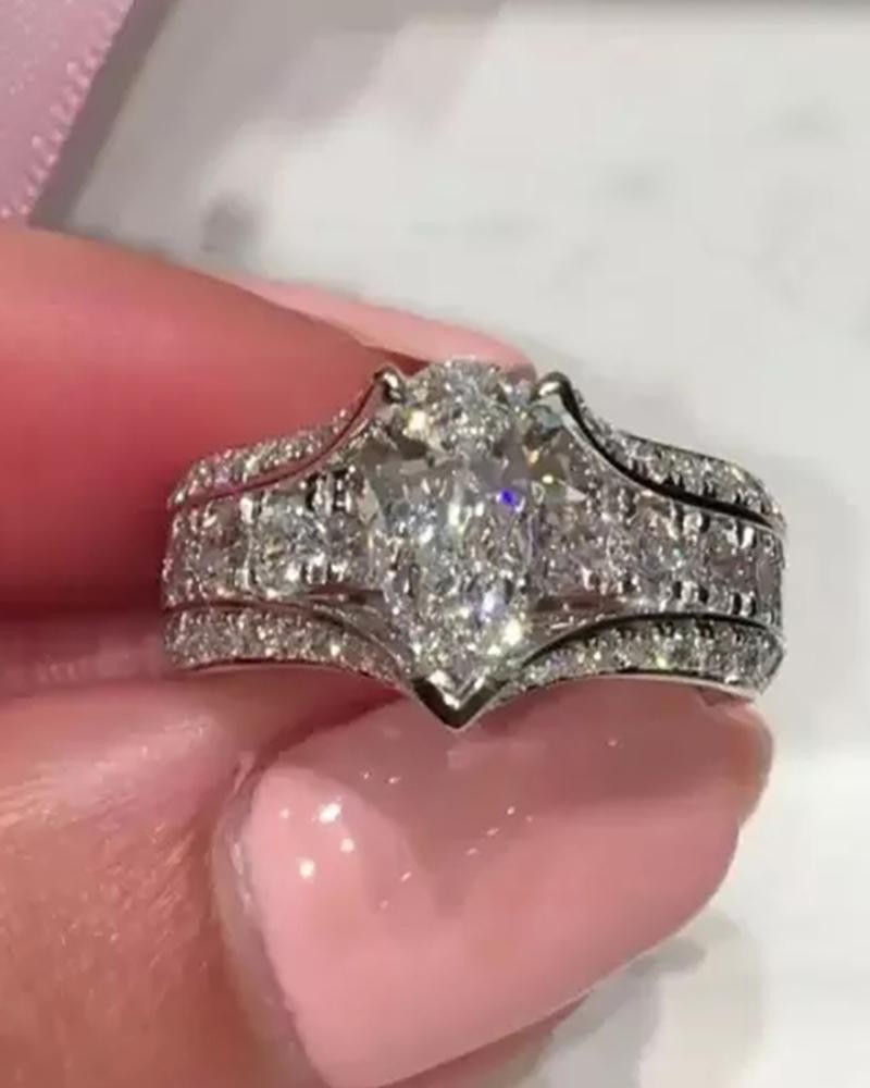 1pcs Allover Rhinestone Square Shaped Ring, Silver