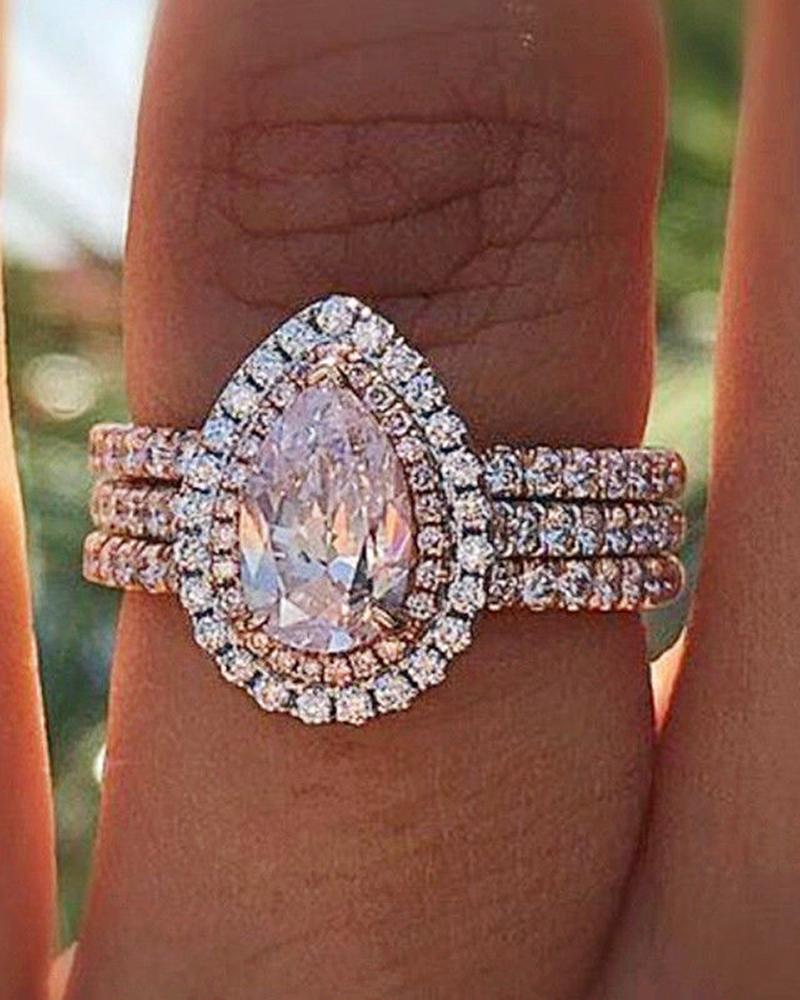 1pcs Allover Rhinestone Waterdrop Shaped Ring, Pink