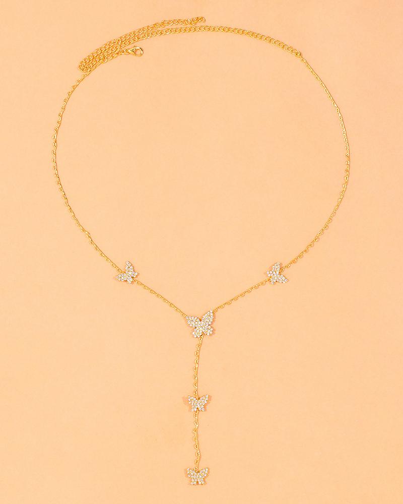 1pcs Butterfly Tassel Decor Rhinestone Necklace, Gold