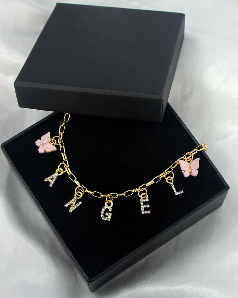 1pcs Letter Butterfly Pendant Rhinestone Chain Necklace, Style2