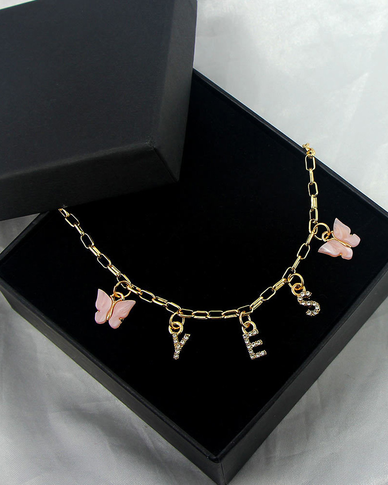 1pcs Letter Butterfly Pendant Rhinestone Chain Necklace, Style3