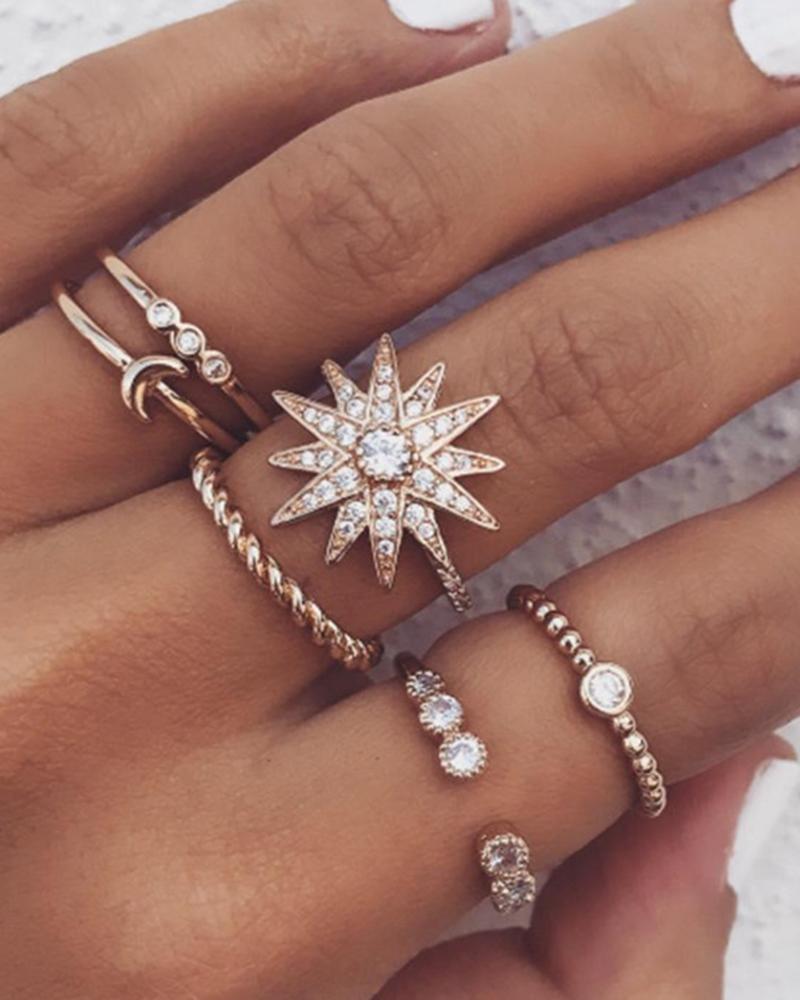 1pcs Minimalist Moon Star Graphic Geometric Stackable Rings Set, Style2