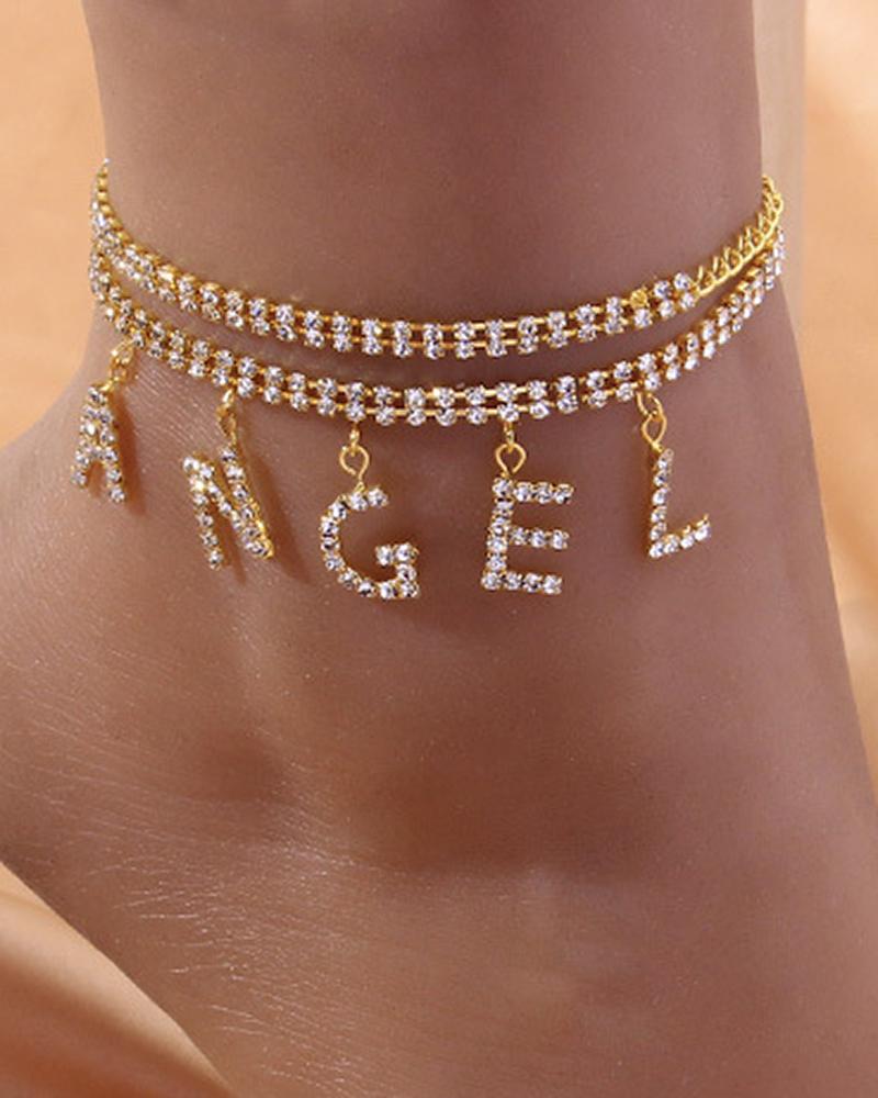 1pcs Multi Layered Rhinestone Letter Pendant Anklet, Gold