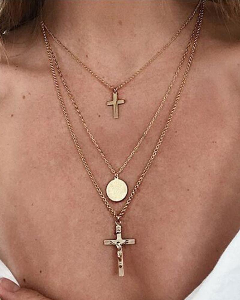 1pcs Multi-layer Disc Cross Pendant Necklace, Gold