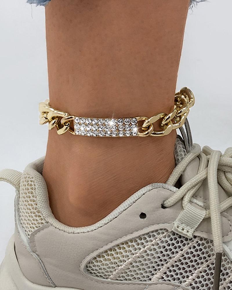 1pcs Retro Rhinestone Chain Decor Anklet, Gold