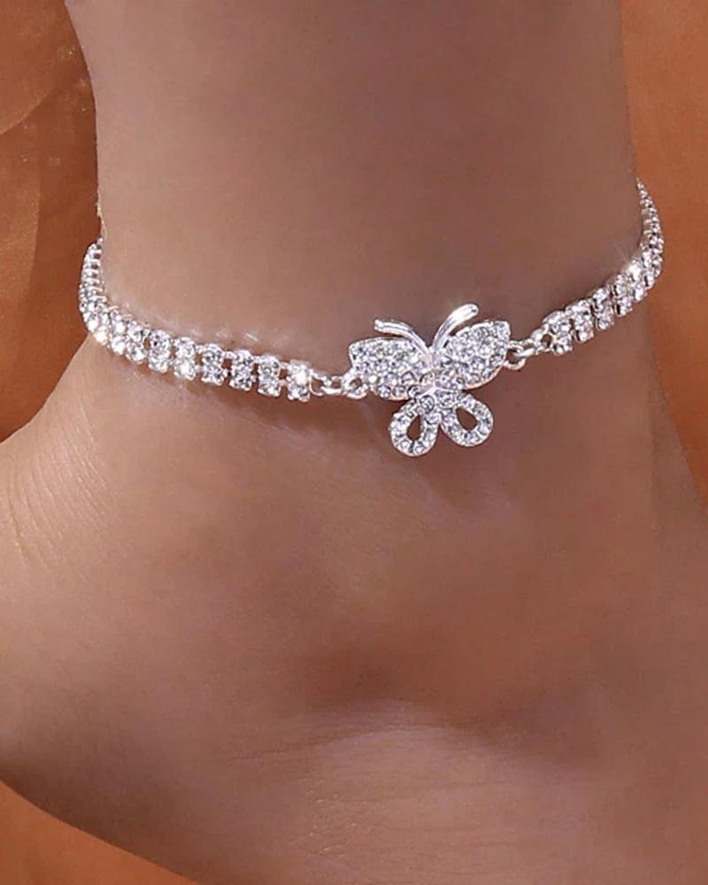 1pcs Rhinestone Butterfly Pattern Chain Anklet, Silver