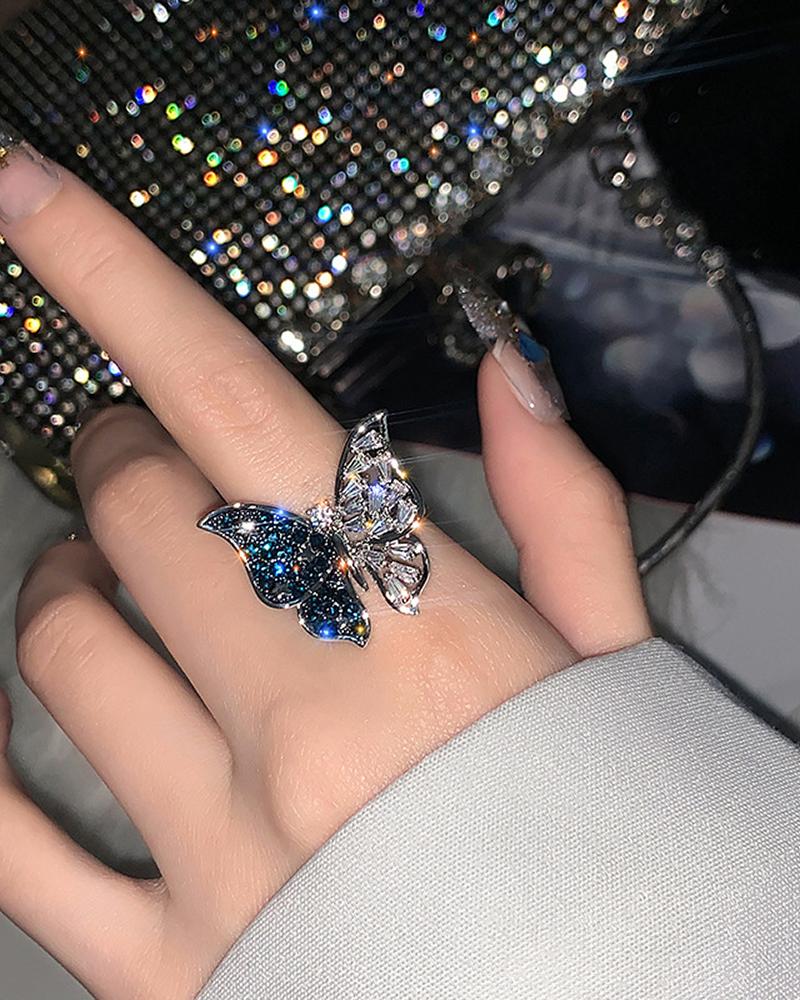 1pcs Rhinestone Decor Butterfly Shaped Ring, Silver