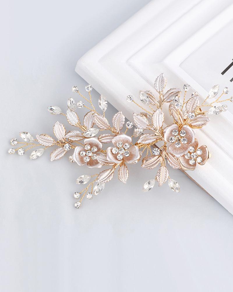 1pcs Rhinestone Floral Pattern Hair Accessories Bride Wedding Hair Comb Clip, Gold