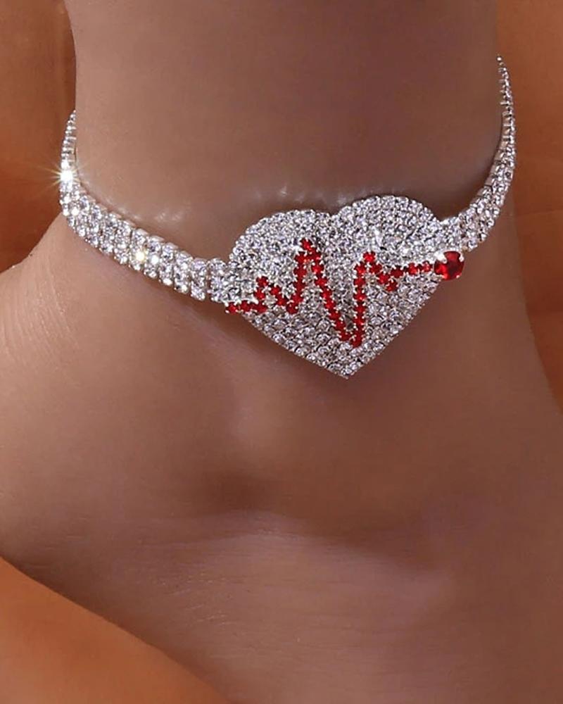 1pcs Rinestone Electrocardiogram Heart Pattern Chain Anklet, Silver