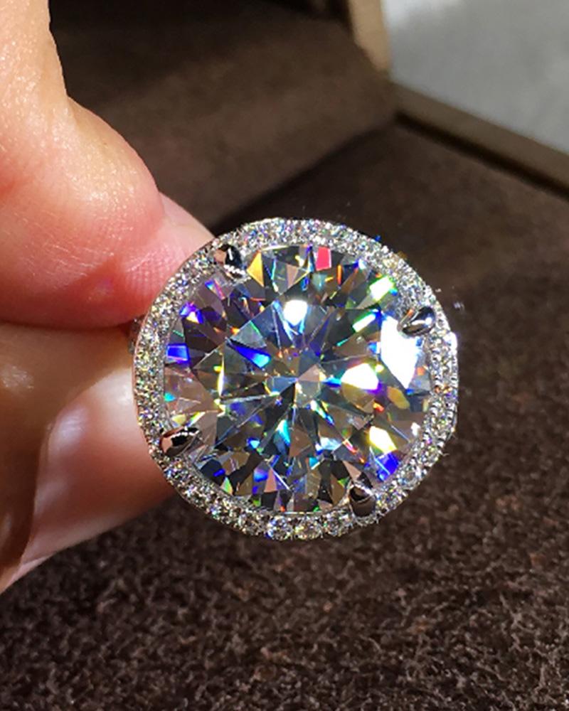 1pcs Round Shaped Allover Rhinestone Ring, Silver