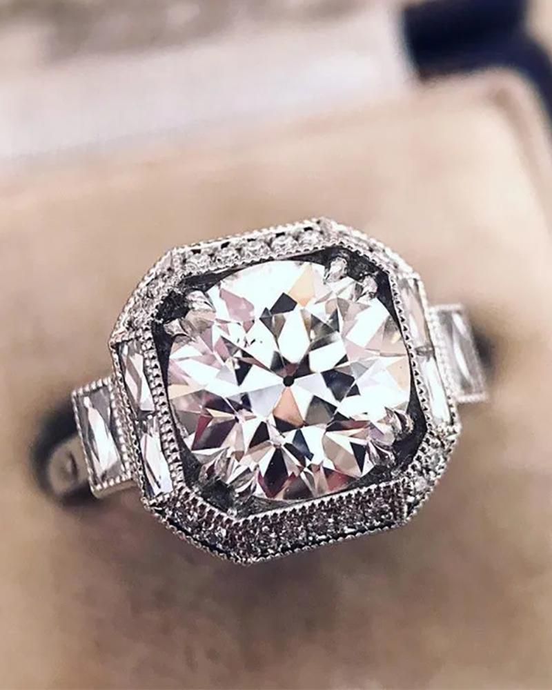 1pcs Square Shaped Rhinestone Decor Ring, Silver