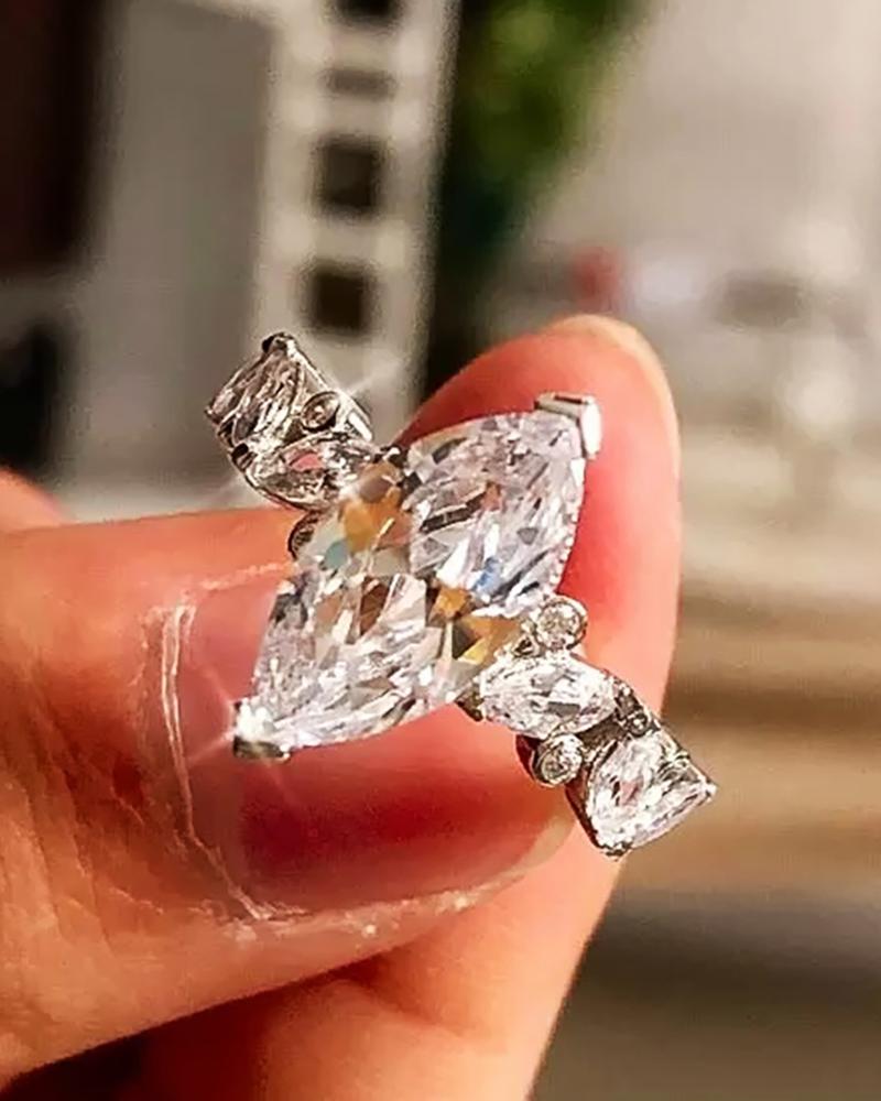 1pcs Zircon Decor Geometric Shaped Ring, Silver