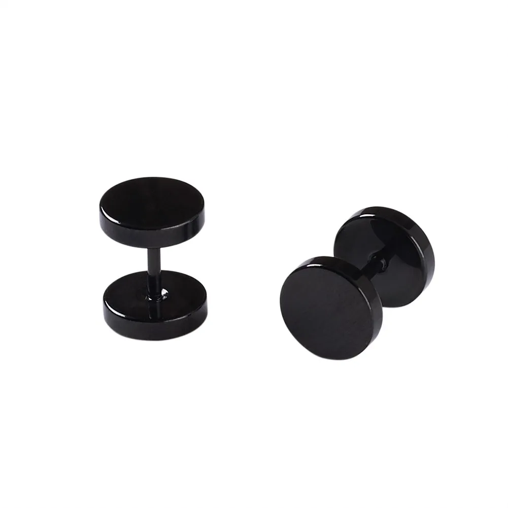 Kissitty 2Pcs/Set Black Flat Round Fake Plug Gauge for Women Men ear Tunnel Earring Piercing Stainless Steel Jewelry Findings