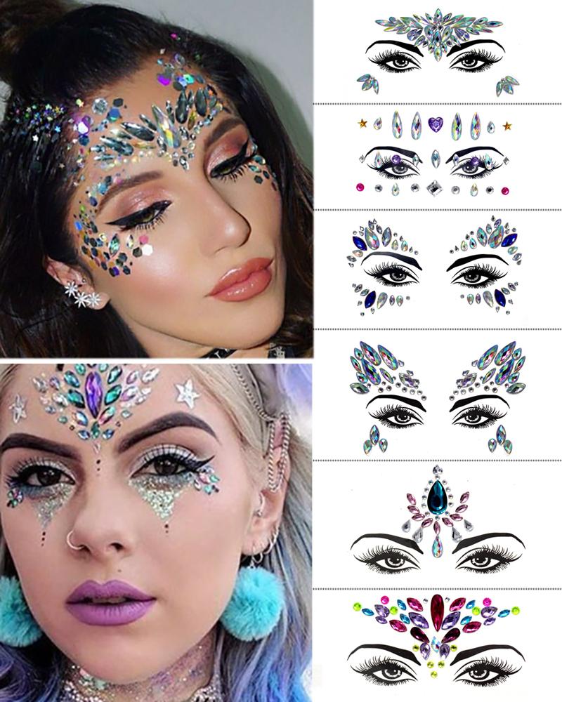 1sheet Waterproof Rhinestone Face Gems Temporary Tattoo Stickers, Style1