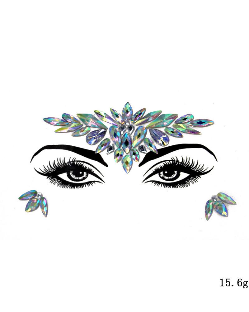1sheet Waterproof Rhinestone Face Gems Temporary Tattoo Stickers, Style2