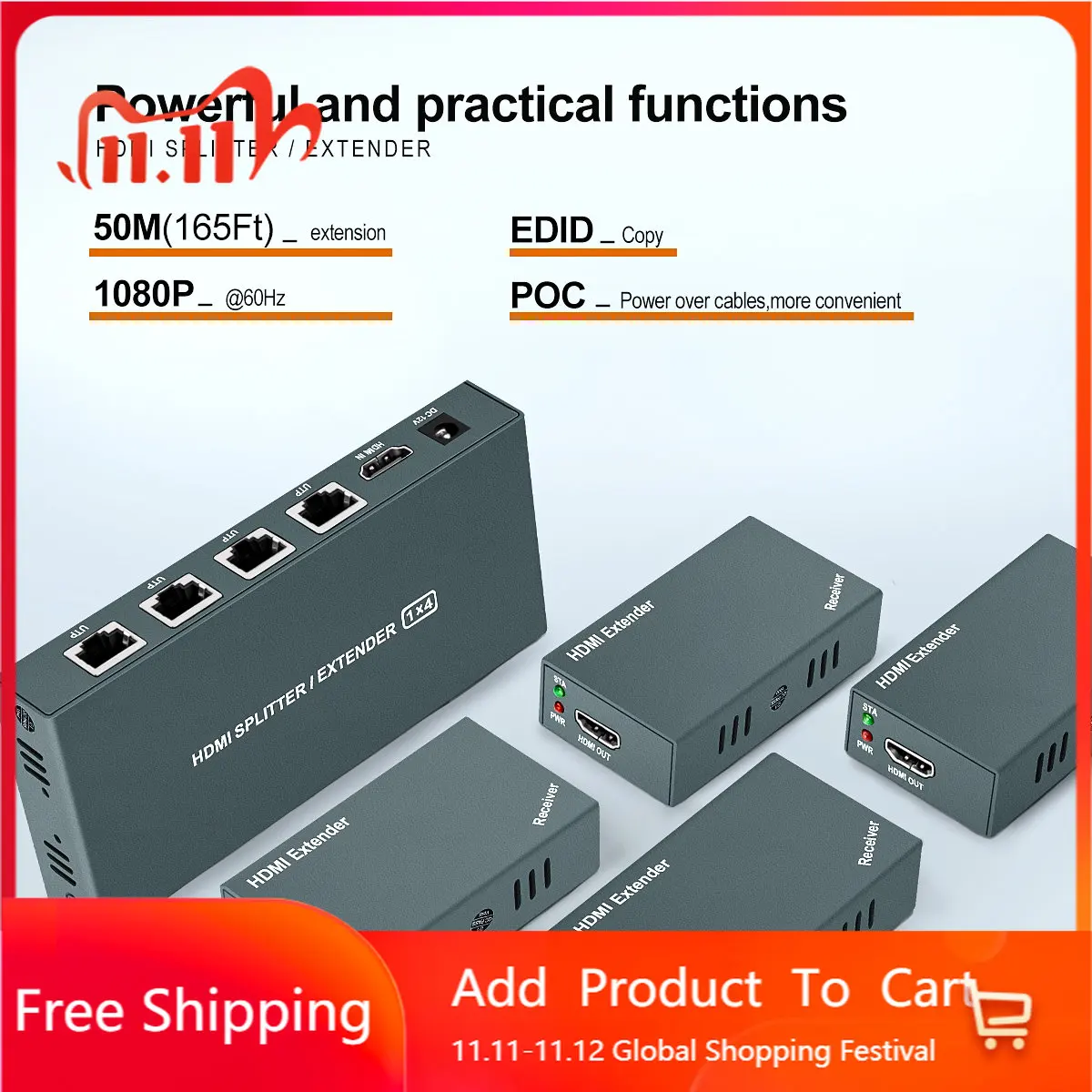1x4 HDMI расширитель разветвитель 1080p по Cat5e/Cat6 Ethernet-кабель с контуром-до 50 м/165ft-EDID Management 1920*1080 @ 60 Гц