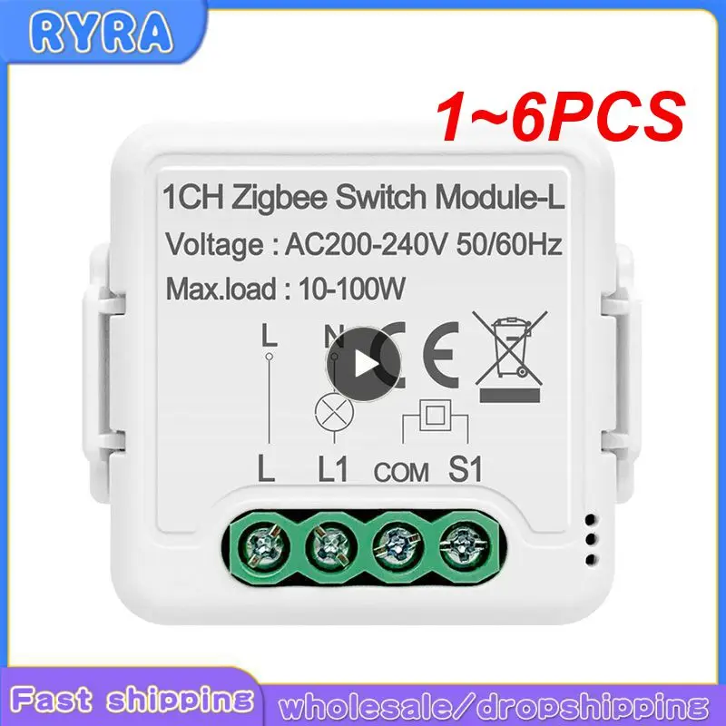 1~6PCS Tuya Smart Light Switch Module No Neutral Wire Required Switch Support 2 Way Control Works Alice Alexa Hey