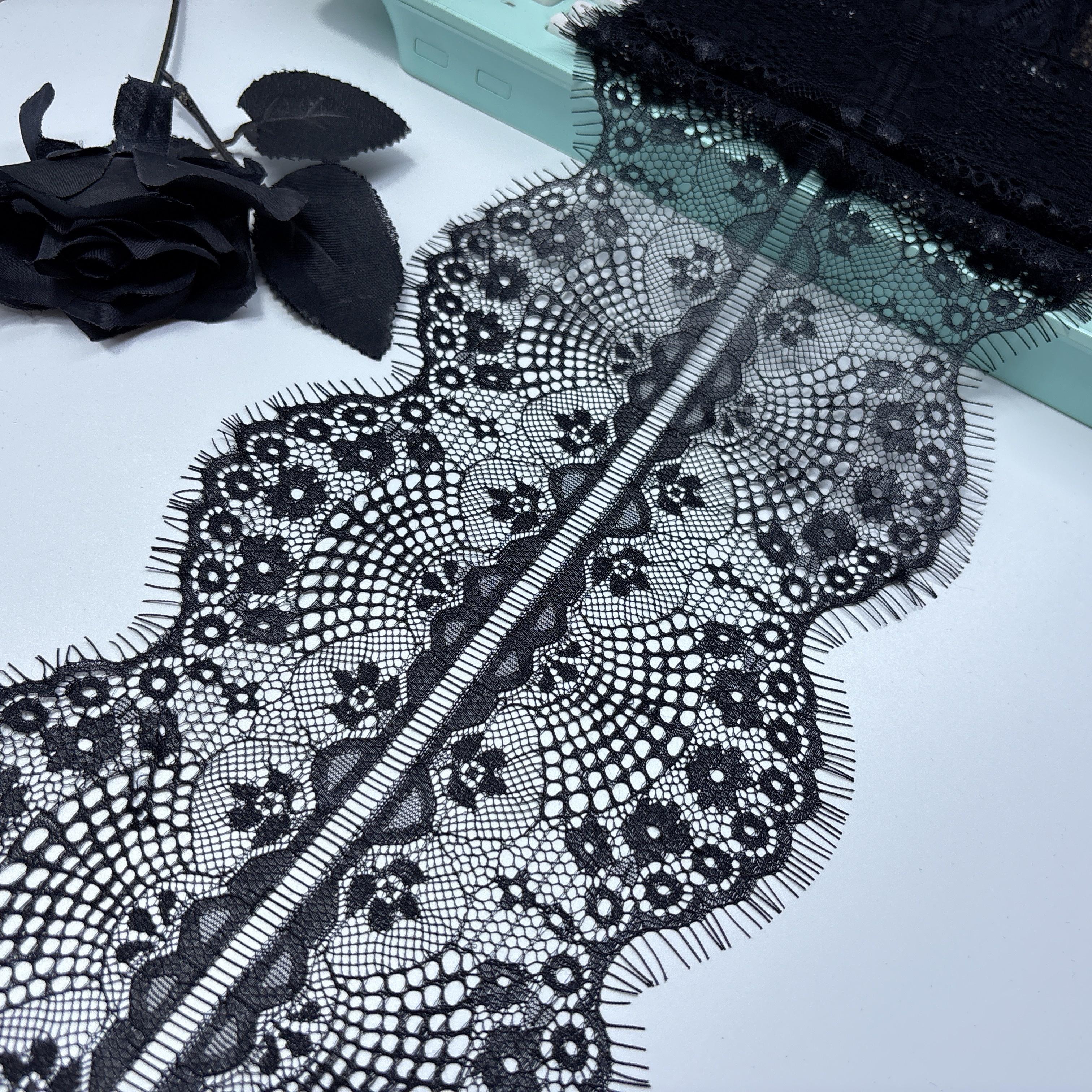 (2 Размеры) 3 м Французское кружево Шантильи, Неэластичное фестончатое кружево с ресничками для свадьбы, бюстгальтера, нижнего белья, одежды, платья, рукоделия 3 meters x 18.5 cm чёрный