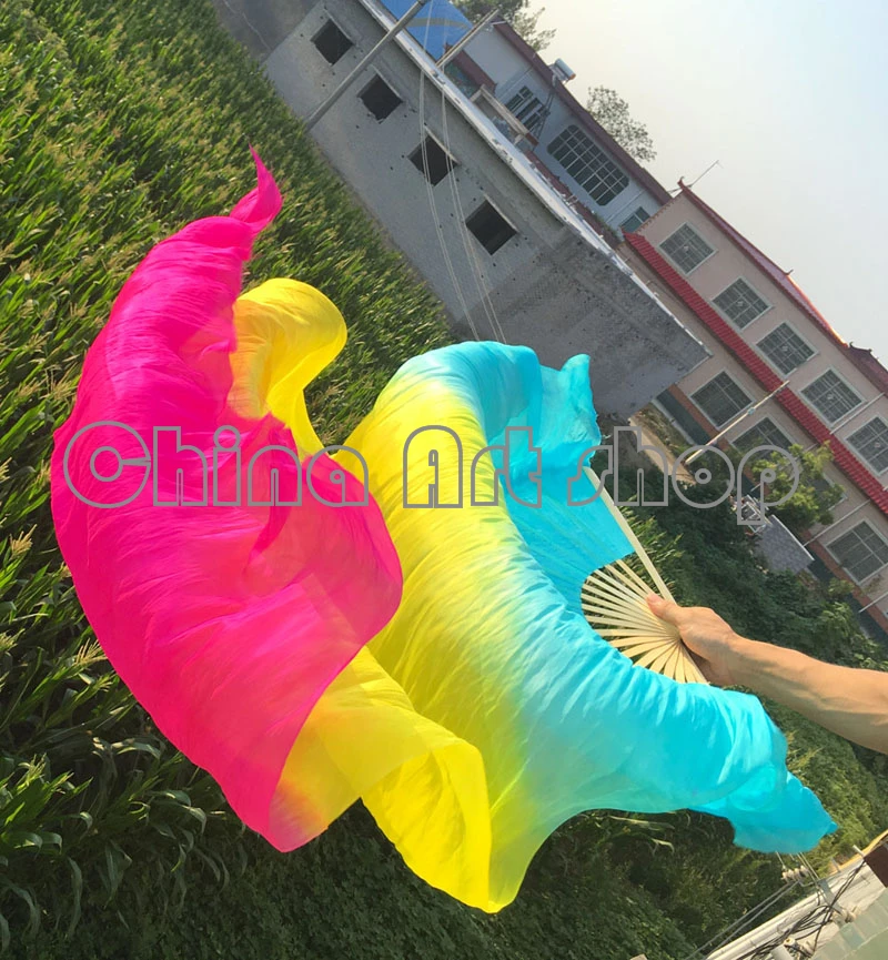 (2 вентилятора) 1 веер для танца живота слева + справа, 100% Шелковая вуаль синего, фиолетового, желтого цвета (1,5 м, 2,0 м), бесплатная доставка