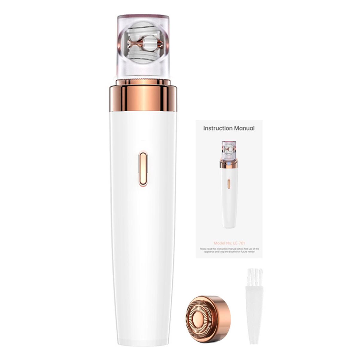2-в-1 женская электробритва со светодиодной подсветкой IPX5 водонепроницаемая портативная бритва для лица, тела, зоны бикини, рук, ног, эпилятор с двумя головками, бритва-триммер белый