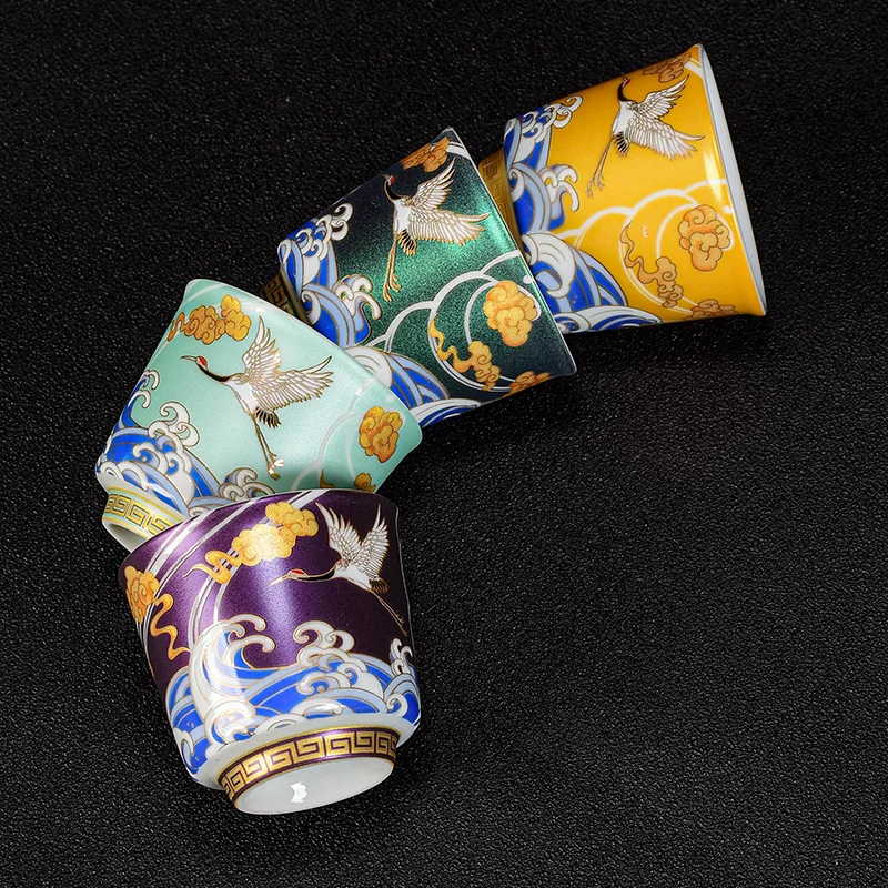 2 искусства, ручная роспись, сияющий журавль, чашка-мастер отечественного прилива, керамическая чаша для чая эмалированного цвета, чайная ча...