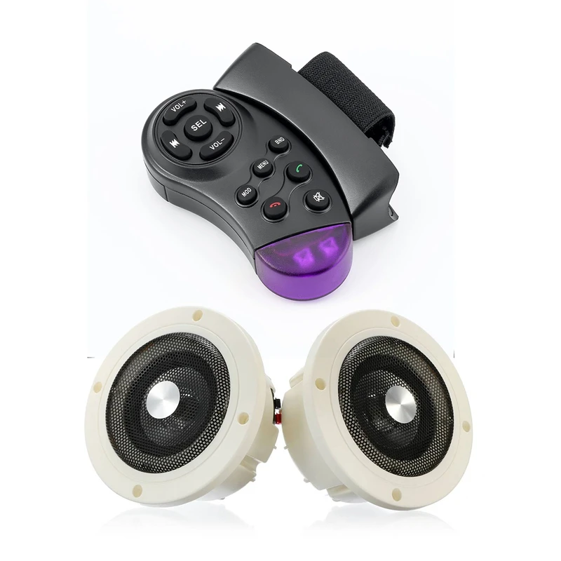 2 комплекта аксессуаров: 1 комплект универсальных кнопок на рулевое колесо и 1 комплект водонепроницаемых морских динамиков