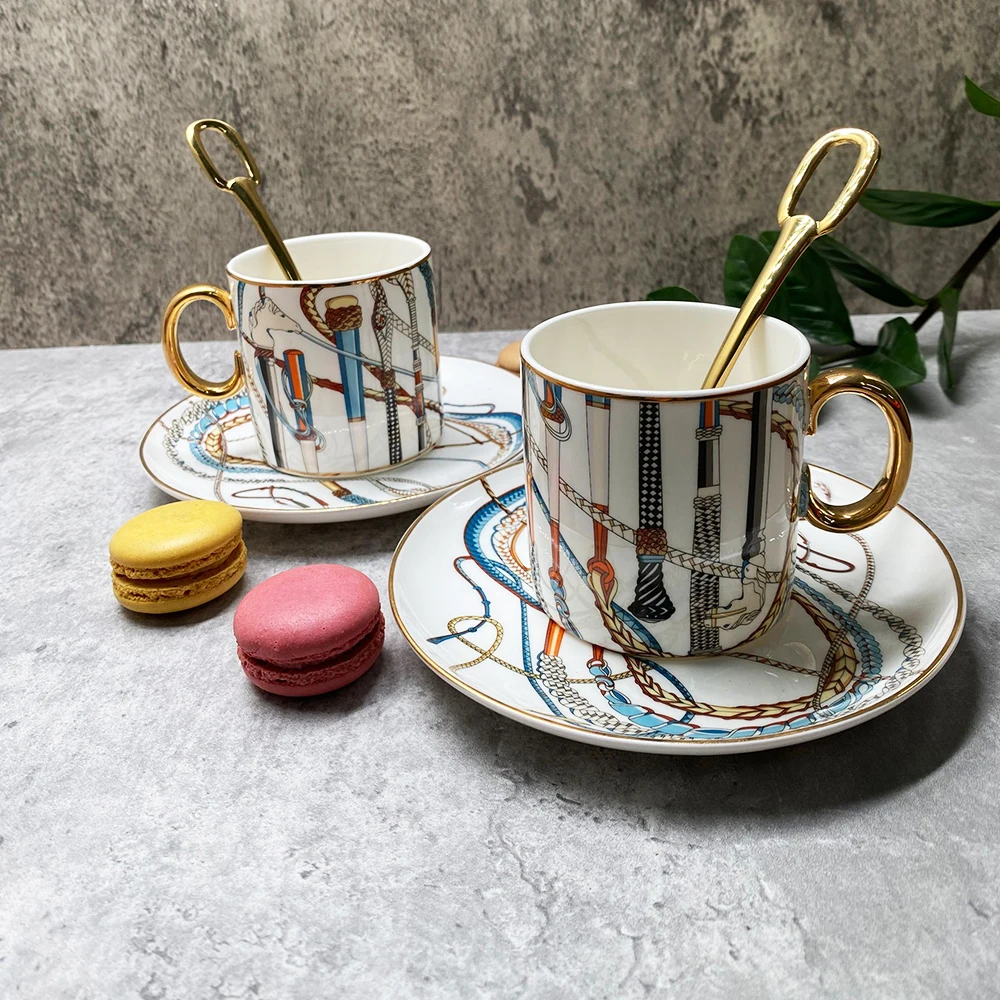 2 комплекта, кофейные кружки и блюдца в стиле ретро с ложкой