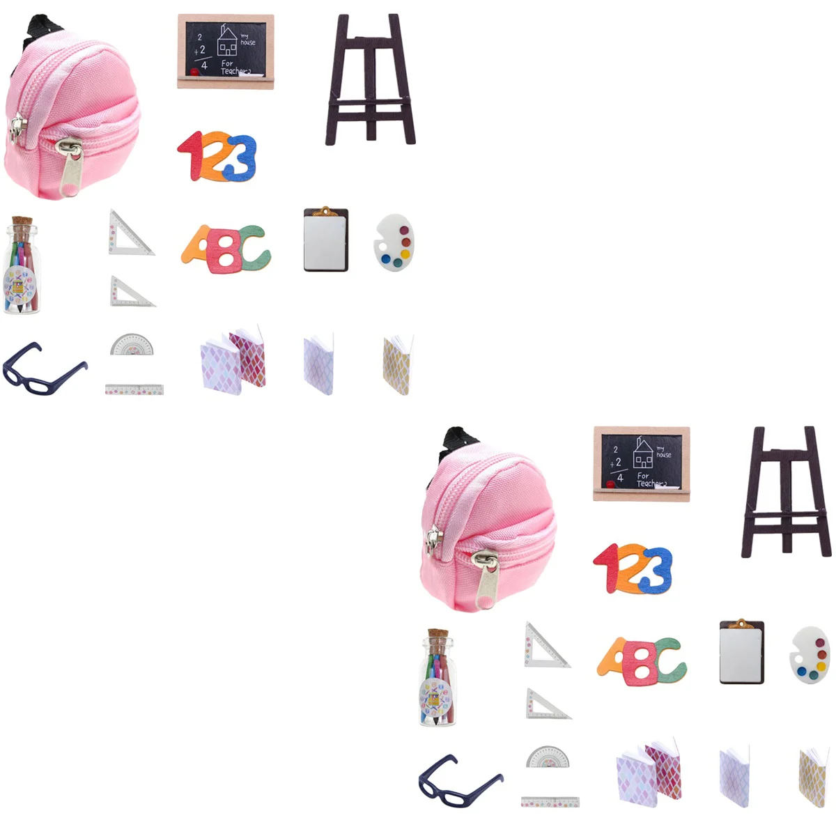 2 комплекта миниатюрных канцтоваров для кукольного домика, Холщовый Рюкзак для кампуса, деревянный рюкзак для девочек