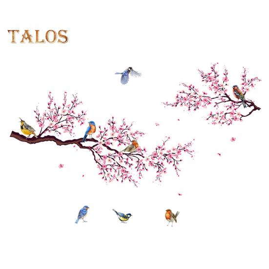 2 листа/компл., стикер на стену с цветочным деревом, розовый цветок, птица, водонепроницаемый, съемный из ПВХ, для гостиной, спальни, современное настенное художественное украшение A