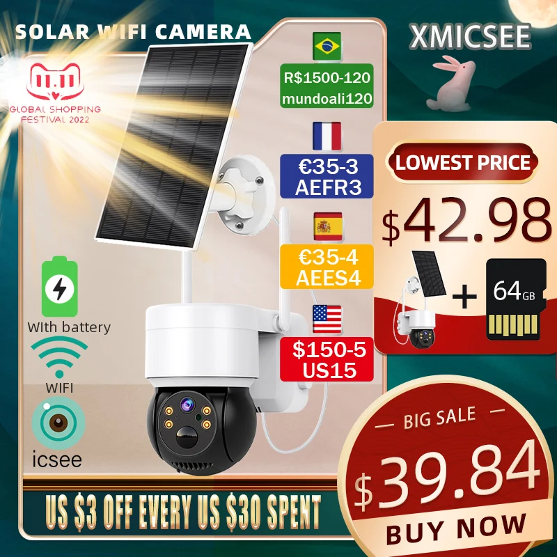 2-мегапиксельная инфракрасная Wi-Fi камера с солнечной панелью, наружная камера видеонаблюдения 1080p, ночное обнаружение движения, полноцветна...