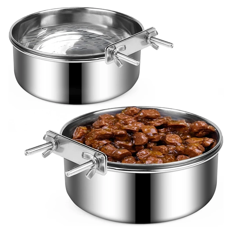 2 миски для собак, миска из нержавеющей стали для еды для собак и миска для воды, подвесные миски для собак для клетки, ящика, конуры, серебристые
