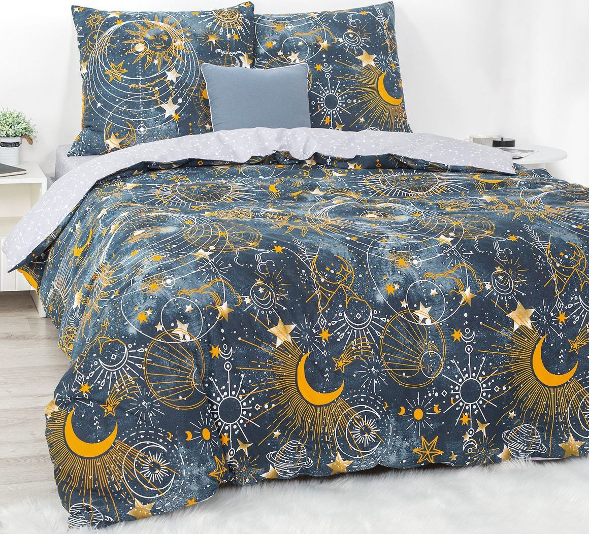 2-спальный, поплин, пододеяльник 175x215 см, простыня 200x215 см, наволочка 70x70 см, серый/синий