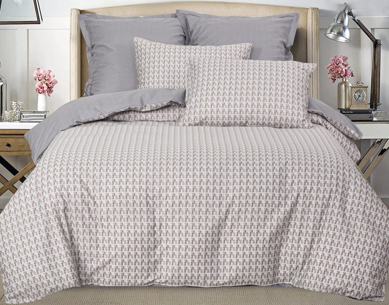 2-спальный с евро простыней, сатин, пододеяльник 175x215 см, простыня 220x240 см, наволочка 70x70 см, серый