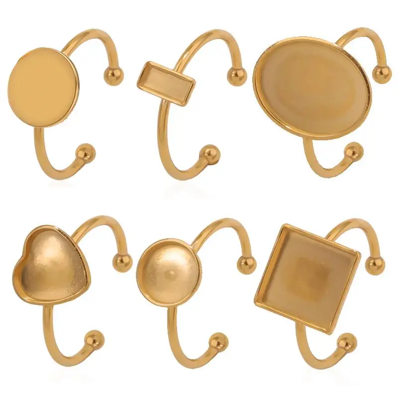 2 шт Регулируемые Пустые Кольца, подходят для золотых колец из нержавеющей стали, пустые стеклянные кабошоны для самостоятельного изготовления ювелирных изделий