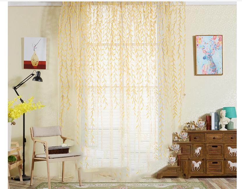 2 шт пасторальный зеленый ивовый лист занавес марля серия оконная марля стеклянная марля марлевые шторы с принтом 1