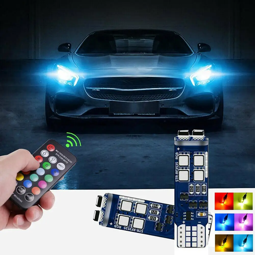 2 шт., Автомобильные светодиодные лампы T10 W5W RGB с пультом дистанционного управления