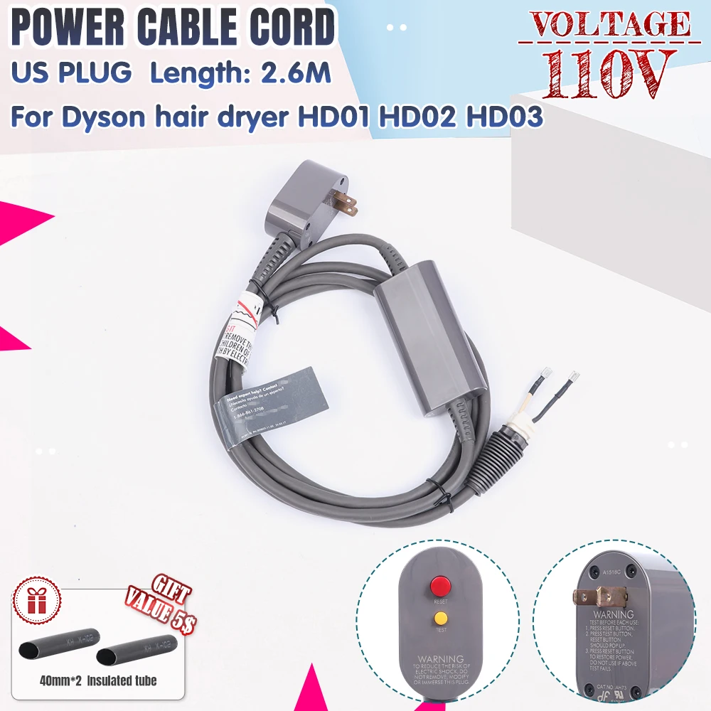 110V US Plug Power Cord Replacement for Dyson Hair Dryer HD01 Accessories Power Cable Adapter + Protective Device