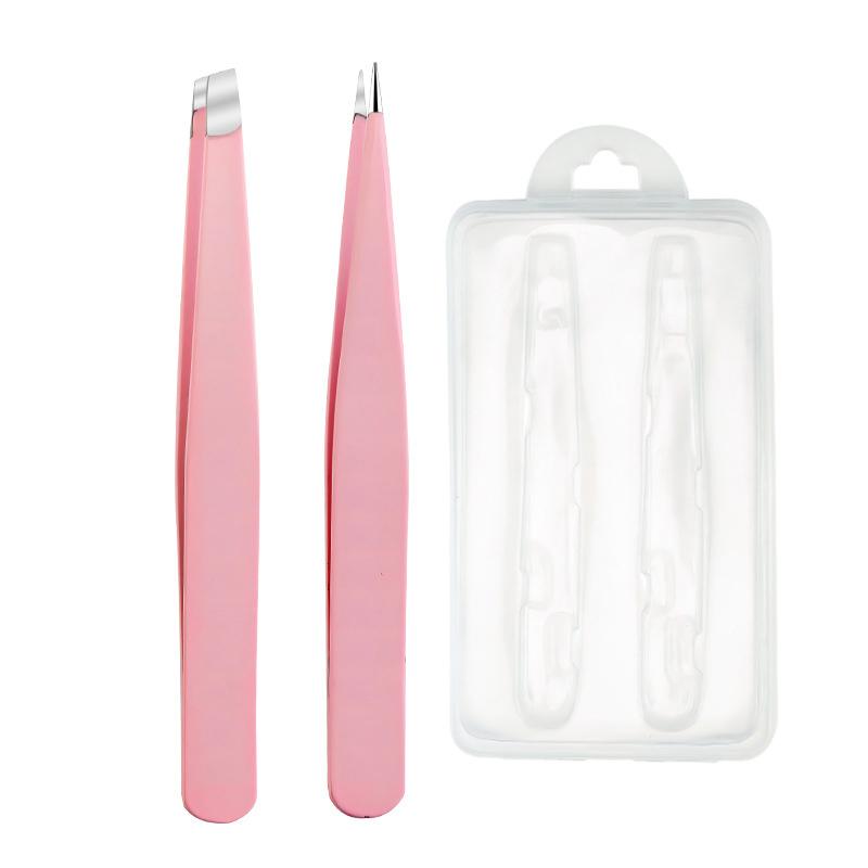 2 шт. Высококачественный пинцет для бровей, инструмент для удаления тонких волос, нержавеющая сталь, скошенный/заостренный кончик, зажимы для бровей, удаление вросших волос розовый