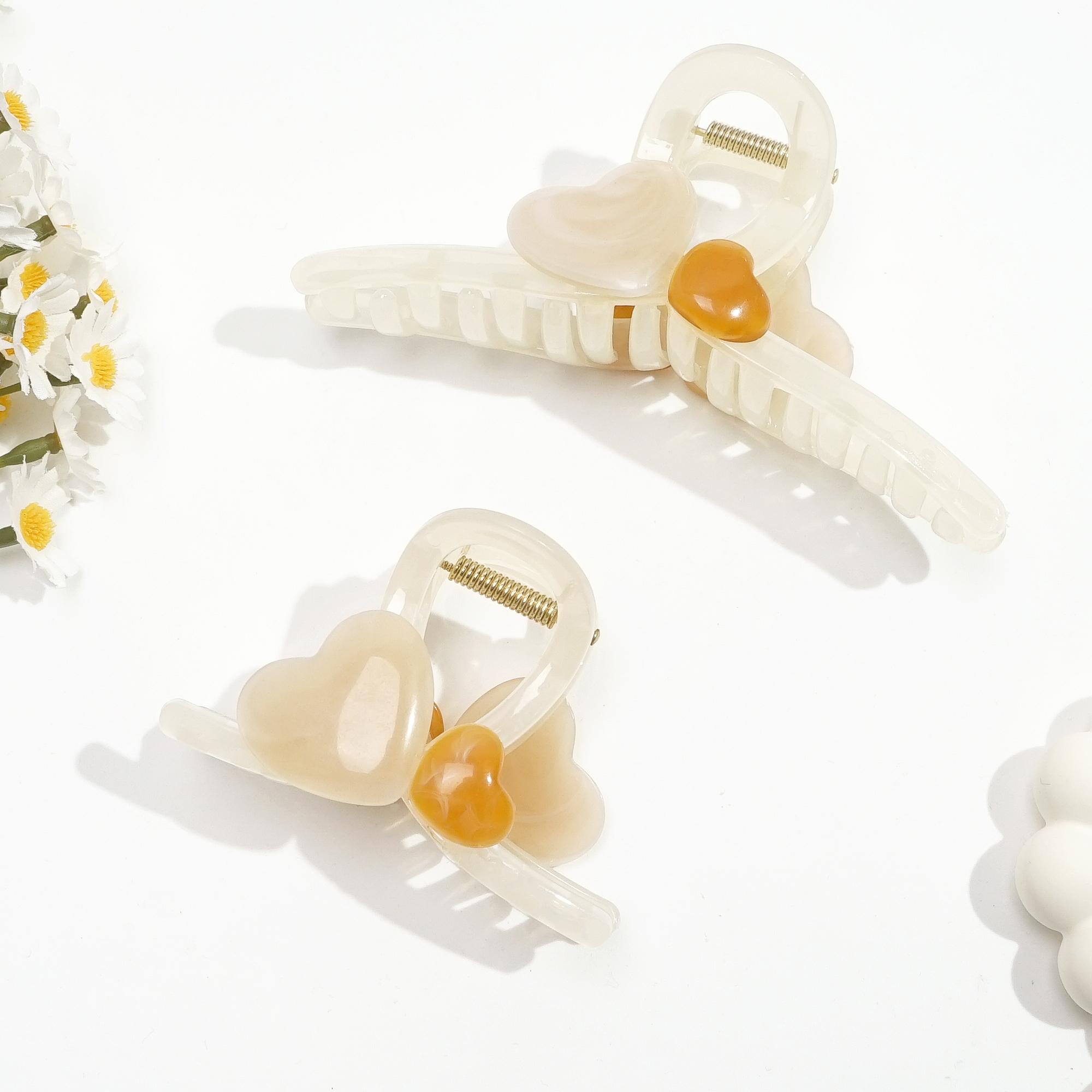 2 шт. Заколки-крабы с бантиками Новые заколки для волос - Весенне-летние прозрачные цвета В форме сердца