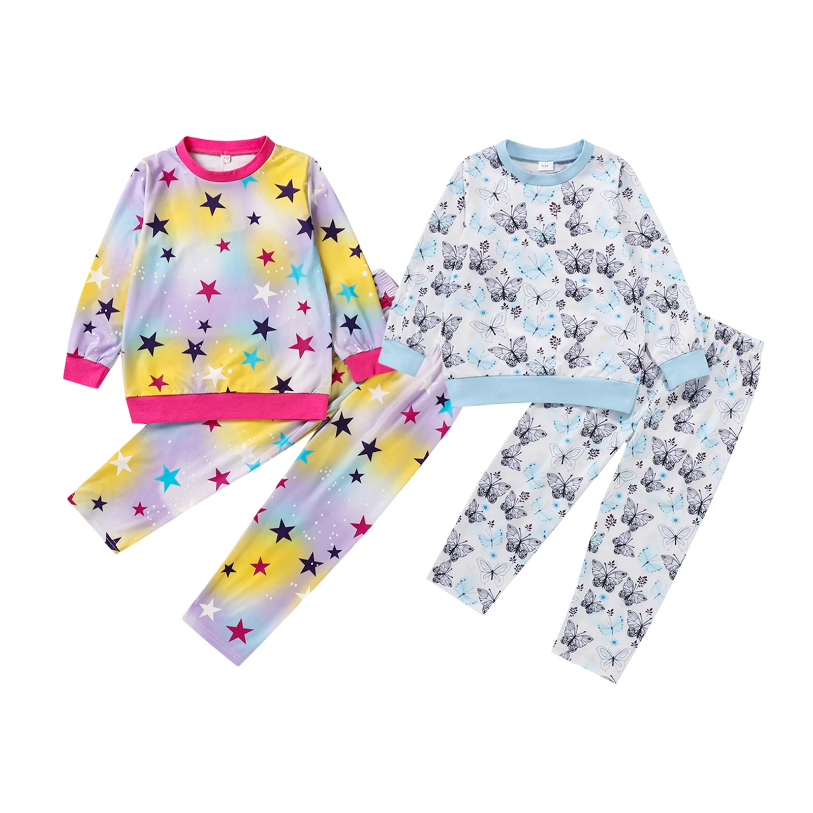 2 шт. Одежда для маленьких девочек модный пуловер с принтом звезд бабочек топ с круглым воротником и брюки для девочек Детская верхняя одежд...